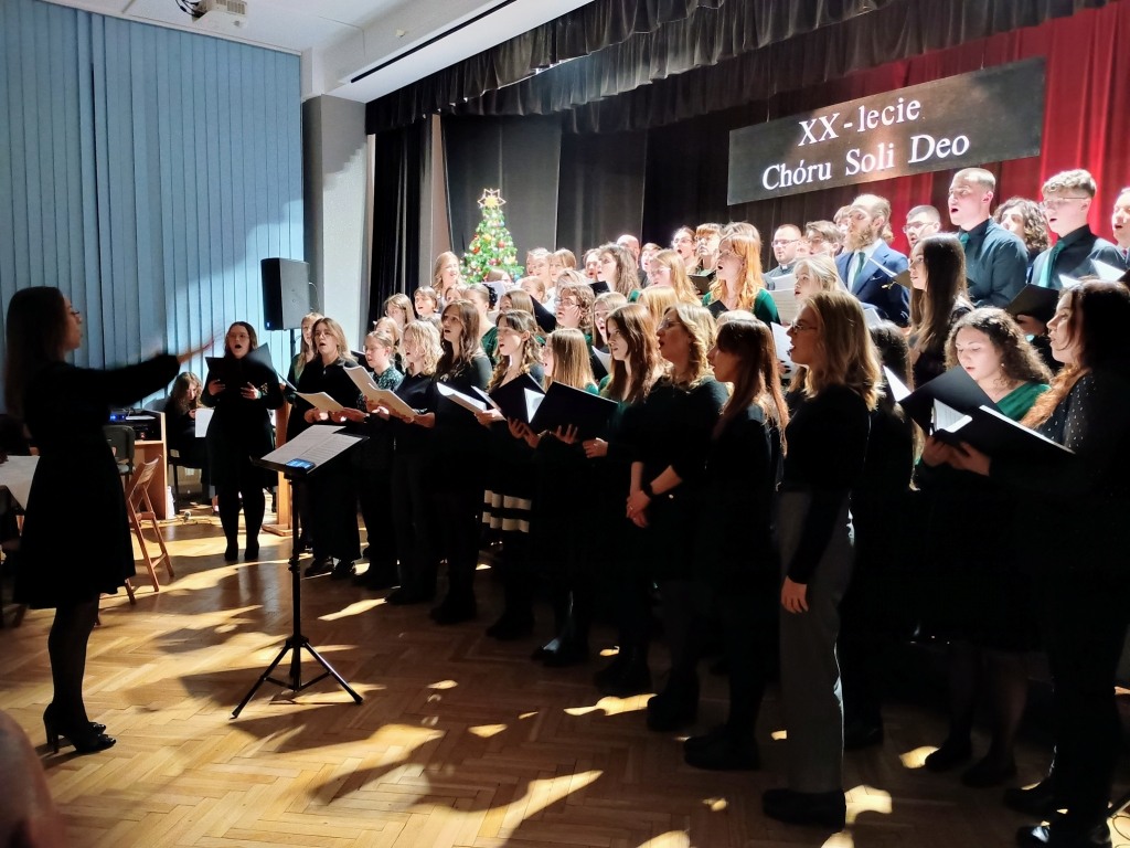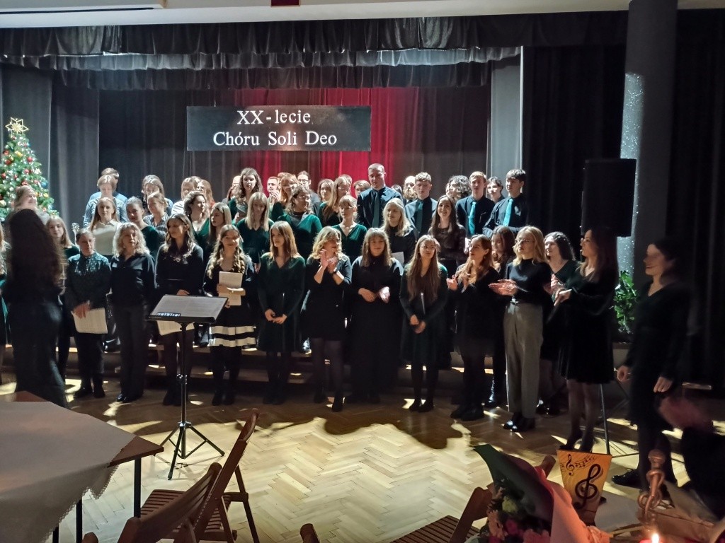 Jednym z najbardziej poruszających momentów jubileuszu było wspólne śpiewanie obecnych chórzystów oraz absolwentów Chóru Soli Deo. Na jednej scenie spotkały się różne pokolenia osób, które przez lata łączyła pasja do muzyki i wspólnego śpiewu. Była to chwila pełna wspomnień, emocji i autentycznej radości.