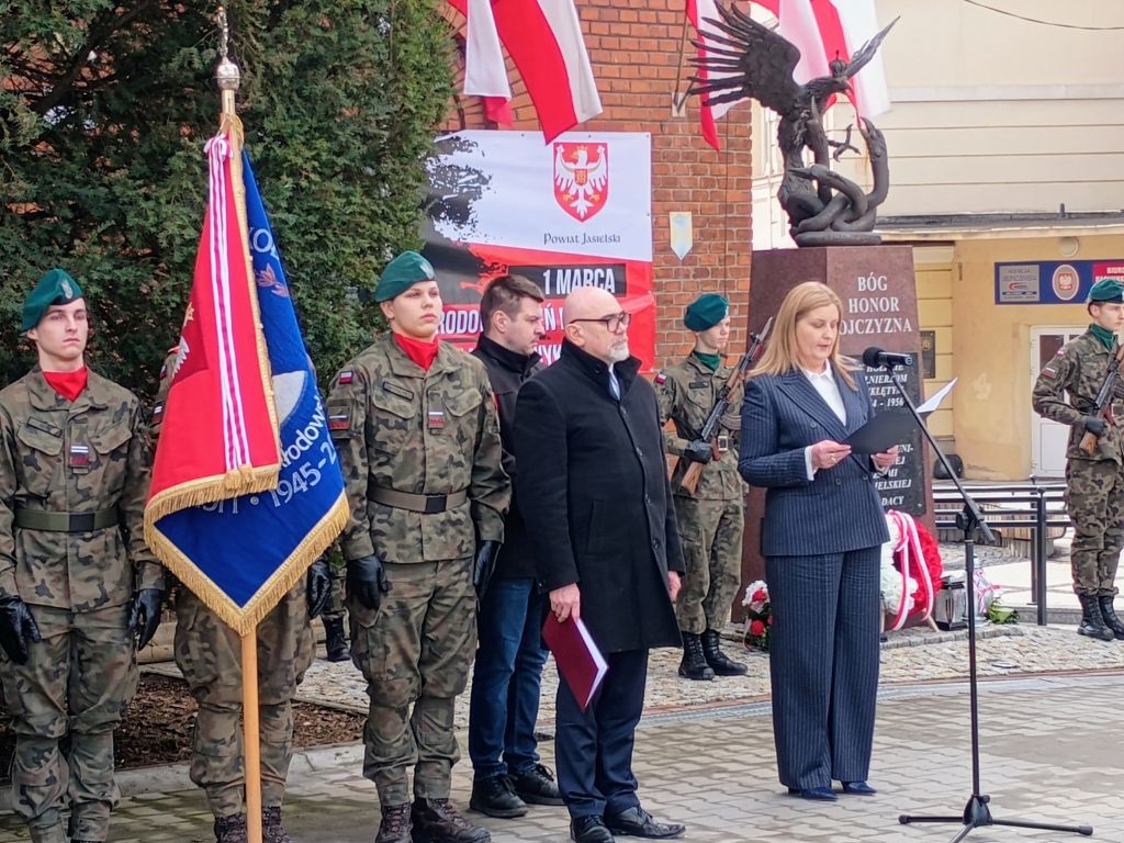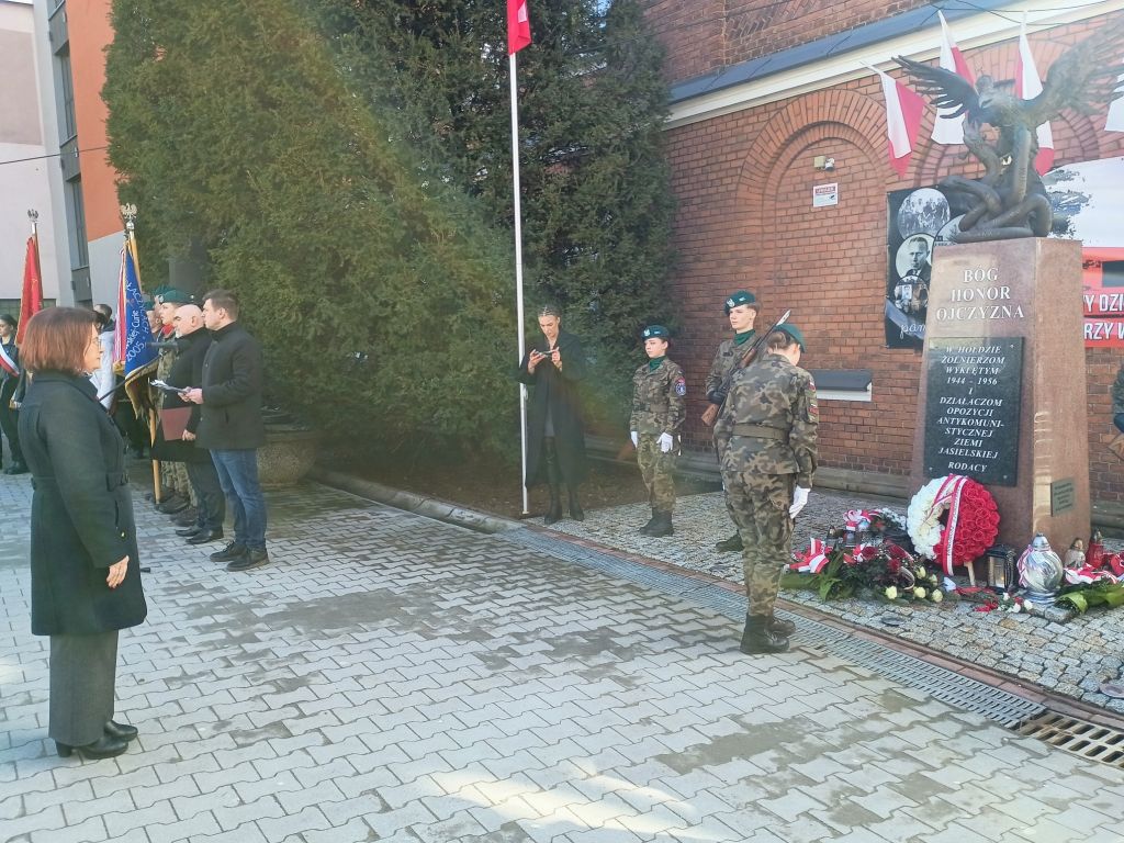 – Gdy w Europie kończyła się wojna i jedni świętowali zwycięstwo, dla Polski zaczynał się nowy, trudny rozdział. Choć ucichły działa, nie przyszła prawdziwa wolność. W kraju stacjonowała Armia Czerwona, a władzę przejęli komuniści zależni od Moskwy. Ci, którzy walczyli o niepodległość, zostali uznani za wrogów ludu. Dlatego obchodzimy dziś Dzień Pamięci Żołnierzy Wyklętych, tych, którzy po wojnie nie zgodzili się na sowietyzację Polski i mieli odwagę walczyć o jej suwerenność. Symbolem tej niezłomności jest podpułkownik Łukasz Ciepliński, oficer Armii Krajowej. Aresztowany w 1947 roku, mimo brutalnych tortur, nie zdradził swoich żołnierzy. 1 marca 1951 roku został zamordowany. Chciano skazać go na zapomnienie, lecz pamięć okazała się silniejsza. Represje dotknęły tysięcy osób. Po sfałszowanych wyborach w 1947 roku wielu trafiło do więzień lub zginęło w walce. Ostatni z nich Józef Franczak „Lalek” poległ w 1963 roku – powiedziała wicestarosta jasielski Barbara Burbelka.